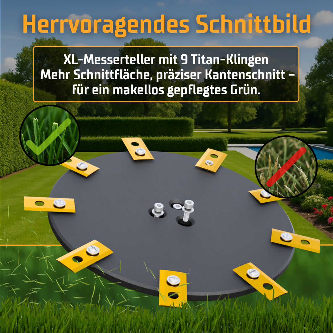 Get the best out of your robotic mower. The GreenGears3D performance blade disc optimizes your Sunseeker with 9 blades for an extremely fine cutting pattern and maximum mulch effect.